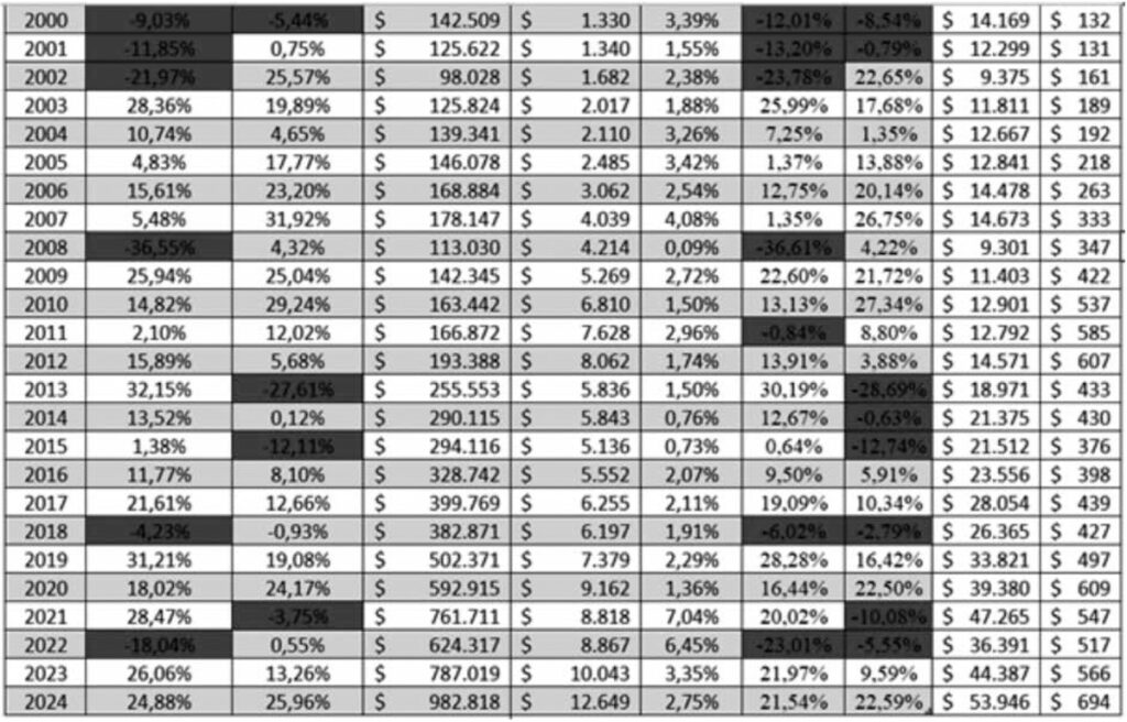 Tabel 2: Vergelijking tussen S&P 500 en goud, periode 1928 t/m 2024 in nominale en reële cijfers