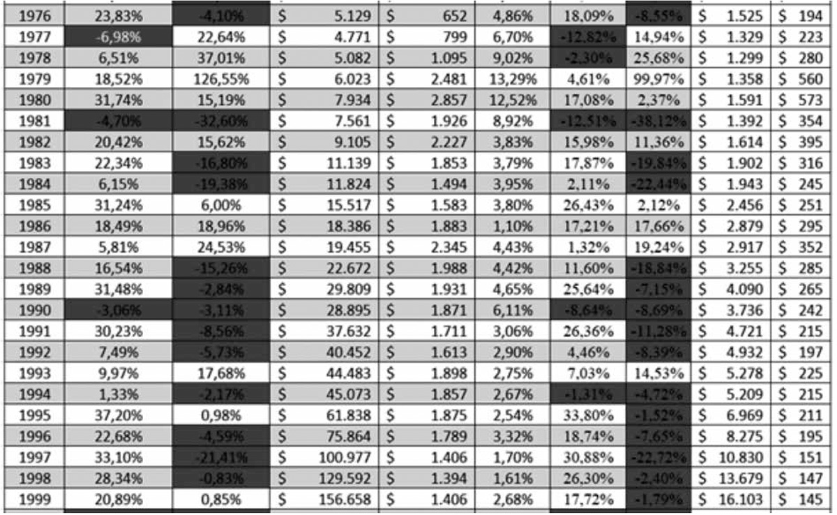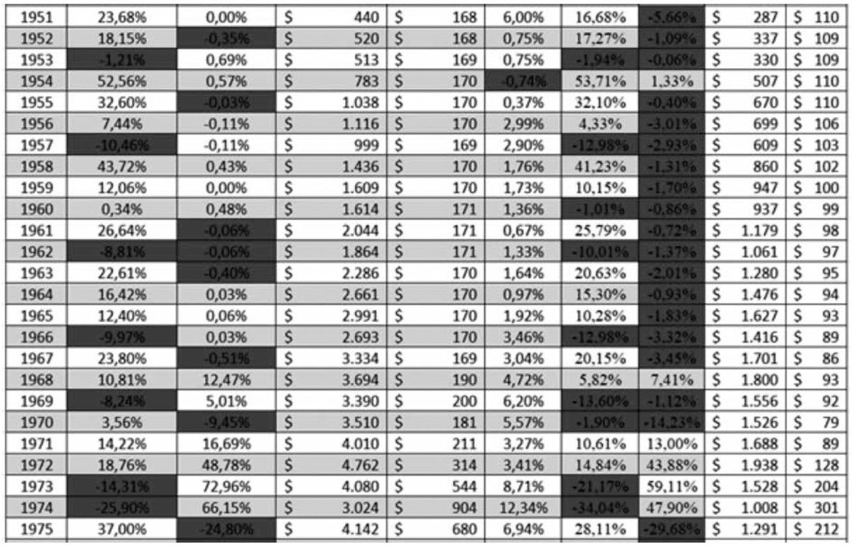 In tabel 1 op p. 25 valt af te lezen de verschillen in rendementen tussen goud versus respectievelijk een belegging in de S&P 500-index, in een 3-maands Treasury Bill (kort.lopend schatkistpapier van de Amerikaanse overheid), in een 10-jarige staatsobligatie van de Amerikaanse overheid, in Amerikaanse bedrijfsobligaties en in Amerikaans vastgoed. De verschillen in rendementen lijken wellicht op het eer.ste gezicht klein, maar rekening houdend met de kracht van ‘compounding’ zijn deze (historisch) groot.
