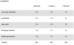 LET OP: Door de lage rentes is zeker op dit moment beleggen in obligaties niet per definitie risicoloos. Houd daar dus rekening mee met het samenstellen van uw portefeuille!